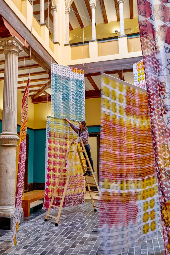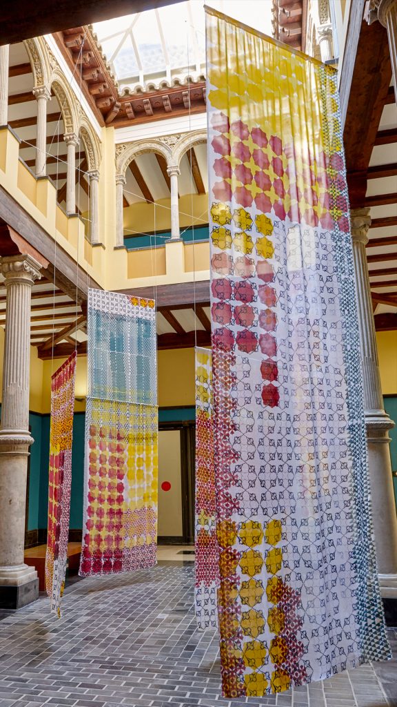 “Pattern Reveal –como su nombre indica– es un patrón que va revelándose cuando nos enfrentamos a la pintura y experimentamos los diferentes puntos de vista que la artista nos propone en su expansión all-over, donde la mirada se descentraliza y abarca el espacio en su totalidad”.