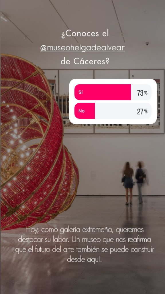 Como galería extremeña, nos parece reseñable destacar la labor del Museo Helga de Alvear de Cáceres, un museo que nos reafirma que el futuro del arte también se construye desde aquí. Un museo vivo, en una comunidad en constante cambio, lema de este 2025.