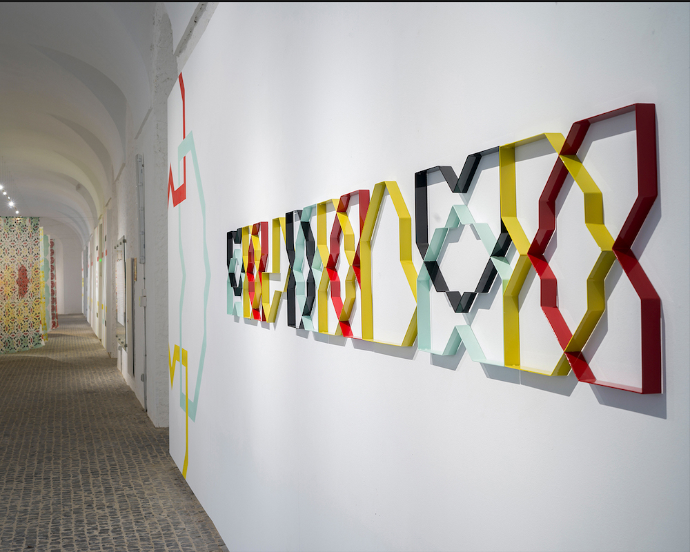 Isabel Flores parte de un ejercicio de apropiación, recuperación y reconstrucción de determinados patrones y ornamentos, extraídos de lugares comunes y objetos cotidianos que se encuentran anclados en la memoria personal y colectiva del patrimonio tangible e intangible de la artista y su entorno. En cada una de sus obras, transforma dichos motivos y los entiende como formas que se repiten de manera indefinida sobre la variedad de soportes que utiliza: la cerámica, el textil, la forja y la pintura mural, medios que se interseccionan y dialogan entre sí mismos. Tales formas se expanden en un proceso de transferencia de un medio a otro y los soportes tradicionales del ornamento se someten a una sucesión de préstamos donde itineran, comparten, adoptan diferentes morfologías que modifican y cuestionan el lugar destinado o definido históricamente para este elemento.