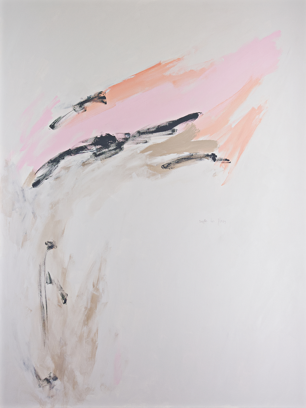 Si bien Grosse desmantela los límites del lienzo, Virginia Rivas genera en ellos un universo propio. Los límites y los no-límites se difuminan, marcados por contornos que encierran atmósferas de color donde se diluye el inicio y el fin de cada pigmento. Rivas trabaja la abstracción desde un paisaje social y cromático –convirtiendo este en un lenguaje propio; aunque pueda parecer antagónica la capacidad de ambas artistas de trabajar la pintura, comparten un mismo impulso: la capacidad de alterar mediante el color —Grosse el espacio, Rivas lo emocional.